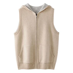 Men’s Cashmere Hooded Vest with Curved Pockets