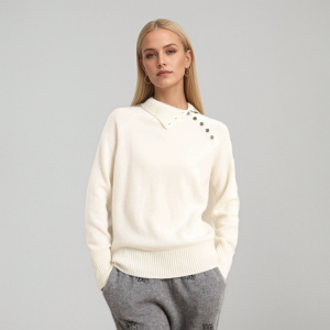 Asymmetric Button Oversized Cashmere Turtleneck Sweater