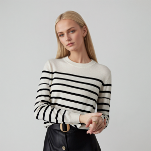 Black And White Striped Cashmere Crewneck Sweater