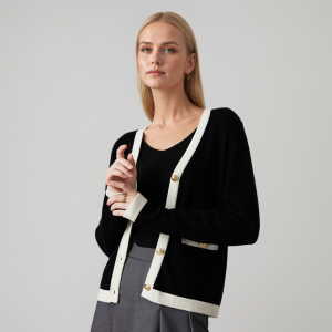 Black Contrast Trim Women’s Cashmere Cardigan