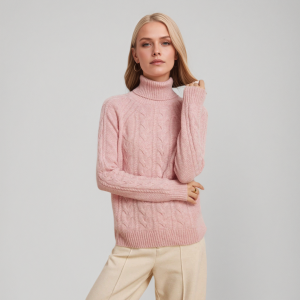 Cable Knit High Neck Women’s Cashmere Sweater