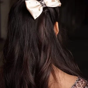 Accessoire cheveux noeud en satin crème et panthère made in France