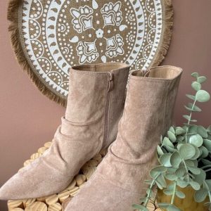 Bottines petit talon en suédine bout pointu